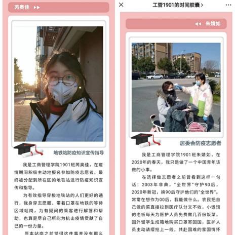 在这场战“疫”中,很多平凡的青年竭尽所能地投入到抗疫志愿者工作中,他们践行着雷锋精神的真谛,传递温暖与信心。回到家乡的suibers也自觉自愿地为防疫默默付出,工商管理学院对支部中努力传播正能量、积极参与志愿服务的青年志愿者们进行了线上宣传,与大家分享他们的经历,激励广大青年提高社会责任感。