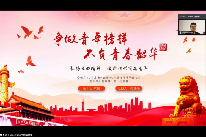 随后,新干班各组进行主题为“争做青年榜样,不负青春韶华”的小组展示。小组代表们从学习习近平总书记五四寄语入手,结合疫情下的青年担当、学生干部培训班的学习体悟,带来了精彩的展示,彰显了新时代青年干部们不负青春韶华、勇于担当时代使命的决心。