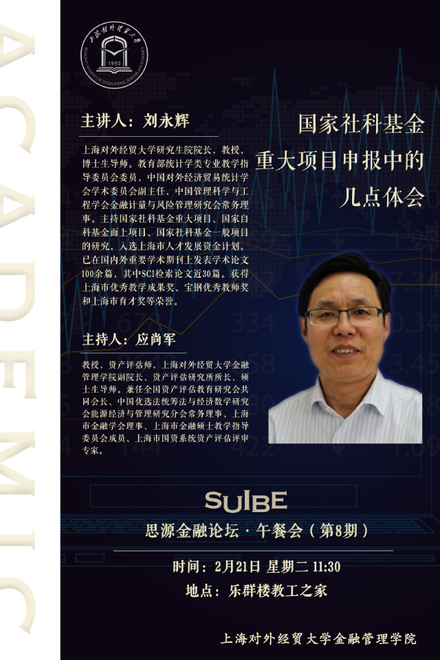 【SUIBE思源金融论坛——午餐会第8期】国家社科基金重大项目申报中的几点体会