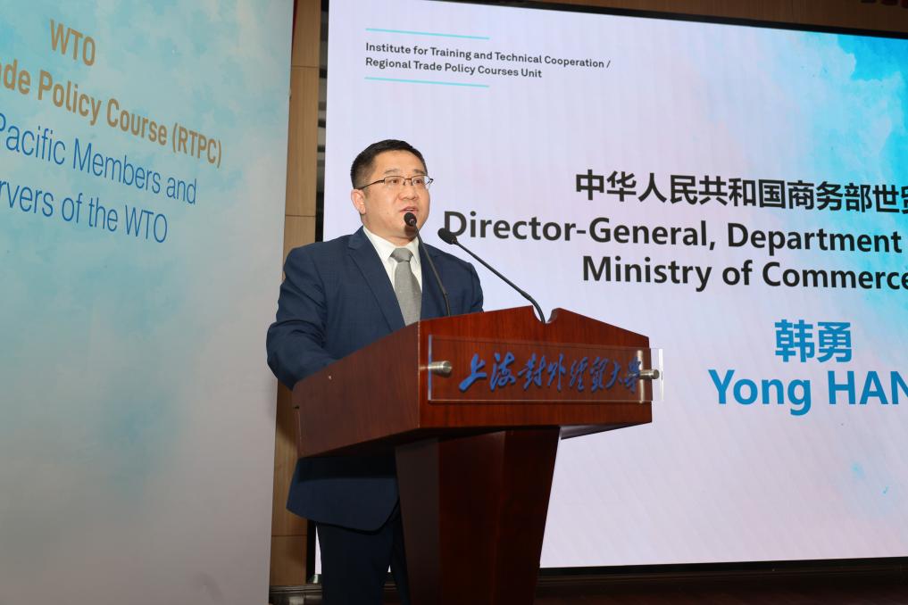 韩勇在致辞中指出,当前全球性挑战凸显,迫切需要世贸组织加快改革、推动国际经贸规则调整以提供解决方案。在此背景下,发展中成员必须打破能力制约,全面掌握规则,提升规则运用和谈判能力,才能使新一代的经贸规则真正符合发展中成员的利益和诉求。韩勇表示,中国的开放和发展为世界带来新的合作机遇,也一直在力所能及的范围内为世贸组织技术援助作贡献,包括设立“中国项目”和积极支持世贸组织秘书处更好开展亚太区域能力建设支持培训等。中国愿继续同其他发展中成员分享经验,提供更多惠及亚太区域发展中成员的公共产品,帮助发展中成员和最不发达国家培养更多熟悉世贸规则体系的人才。韩勇肯定了188宝金博安卓app下载作为世贸组织教席和RTPC合作伙伴,在传播世贸组织知识、开展前沿议题研究、与世贸组织进行技术援助合作等领域取得的成绩,并希望188宝金博安卓app下载与世贸组织加强合作,共同为世贸组织技术援助项目添砖加瓦。