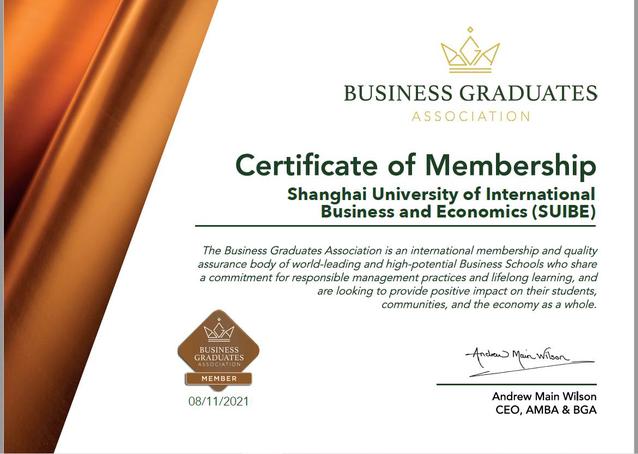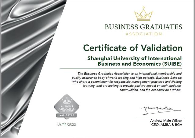 2022年11月18日,我校收到英国商学院毕业生协会(Business Graduates Association,简称BGA)的贺信,并颁发银牌认证证书,至此我校工商管理学院正式通过BGA(银牌)认证。