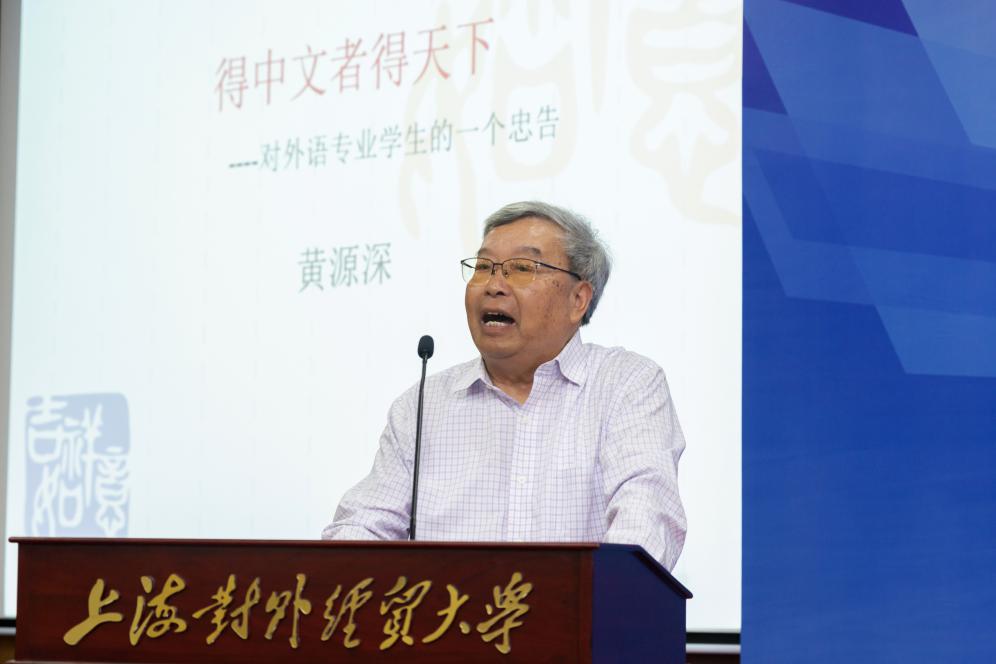 颁奖仪式后,黄源深教授以“得中文者得天下”为主题寄语翻译学习者。他认为,中文是一切学科的基础,而对于翻译来讲,更是基础的基础。外语专业学生务必要下功夫学好中文,翻译教育应开展重视中文修养的“启蒙教育”,做到中文学习常态化。