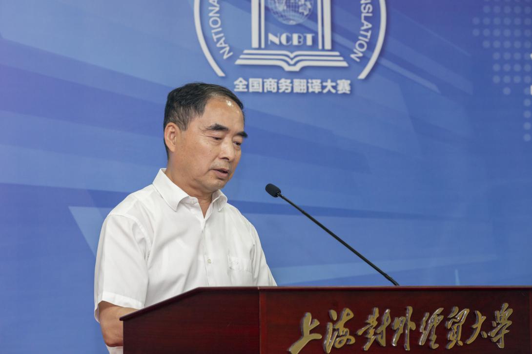 黄友义在致辞中肯定了国际商务外语学院在赛事组织、会务服务、论坛筹备等方面的辛勤付出与显著成效。他指出,商务翻译所涉及的决不仅是经济贸易,还涉及政治、法律法规、国际关系、国际市场竞争,国际话语权多个领域,商务交流涉及讲好中国故事,介绍中国产品、传播中国技术、推广中国创新、实行中国标准等,因此商务翻译大赛的举办非常具有实际意义和辐射作用,希望能继续办下去。针对新技术背景下的翻译人才培养,他提出三点思考:一是翻译专业教育要服务“双循环”;二是翻译教育要培养堪当历史重任的时代新人;三是翻译教育要主动适应新技术革命与教育教学改革。最后,黄友义强调指出,新时代呼唤高质量的翻译教育,也给翻译研究、翻译教育和翻译实践提供了空前的发展机会。我们需要深刻认识历史提供的机遇,抓住机会,挑起自己的历史担当。