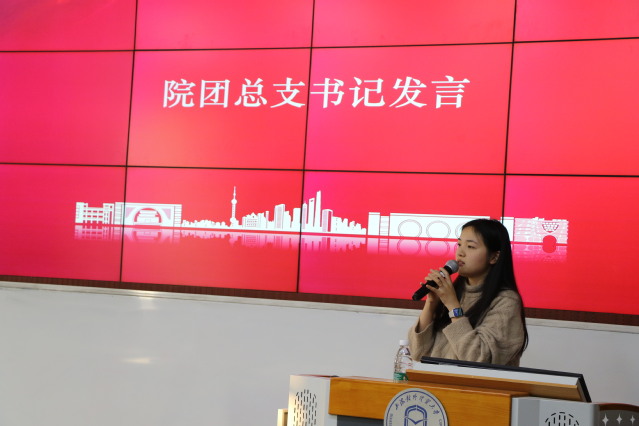 团支部书记李诗婷代表第一届团支部委员会作表态发言,她首先对团员青年的信任和支持表示感谢,并对于团支部以后的工作有两点展望:第一,要借好功能型团支部成立的东风,顺势而上,继续强化研会组织队伍建设,将全面从严治会推向纵深;第二,要坚定理想信念、做好桥梁纽带、练就过硬本领,为建设富有理想、关心同学、清新阳光的研究生会组织贡献力量。
