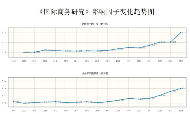 近日,中国知网发布了《中国学术期刊影响因子年报(人文社会科学.2025版)(以下简称《年报》)。根据《年报》关键计量指标显示,我社两本期刊《国际商务研究》和《188宝金博安卓app下载学报》都位于Q2区,是所属贸易经济学科的优秀期刊。在影响力指数(CI)方面,《国际商务研究》为258.562,在所属学科37本刊物中名列第13位;《188宝金博安卓app下载学报》为177.433,在所属学科中名列第15位,表明两本期刊的学术地位稳步提升。在2024年复合影响因子(复合JIF)方面,《国际商务研究》为6.176,较2023年提升73.92%,在所属学科中名列第8位;《188宝金博安卓app下载学报》为4.054,较2023年提升46.72%,在所属学科中名列第13位,反映两本期刊的文章被引频次明显增加,期刊的学术声誉与影响力得到显著提高。