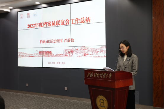 会上,泮静怡代表理事会对2022年度档案员联谊会工作进行汇报,同时对2023年的工作计划作出展望,她希望通过团结和依靠广大会员,助力学校档案工作进一步发展。