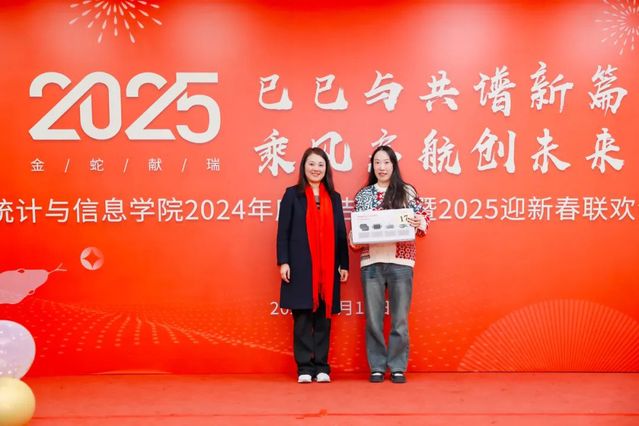 在联欢会的尾声,学院领导们纷纷为教职工送上新年祝福。张日权院长为蛇年本命年的教职工赠送了纪念品,祝福他们在新的一年金蛇迎福,蛇运亨通,蛇年大吉。黄静书记表达了对老师们的感谢和祝福,对学院事业发展的美好愿景,希望全体教职工高扬理想,以奋斗、以激情、以团结、以担当,在2025年浓墨重彩书写崭新篇章!