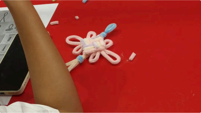 经过一个多小时的精心创作,一个个形态各异、色彩斑斓的扭扭棒中国结诞生了!每一个作品都独一无二,承载着创作者的心意与巧思,比传统的中国结更多了一份温暖。