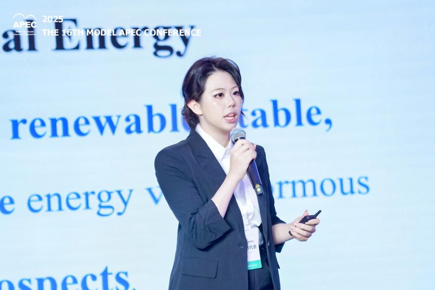 经过一天的紧张比赛,曾薪宇同学成功晋级全国12强。9月21日下午,在巅峰对决的过程中,曾薪宇同学就Enhancing Geothermal Development for APEC Energy Transition 这一主题深入阐述,针对国际化绿色能源合作的痛点与挑战提出高水准解决方案,其表现获得评委高度认可。