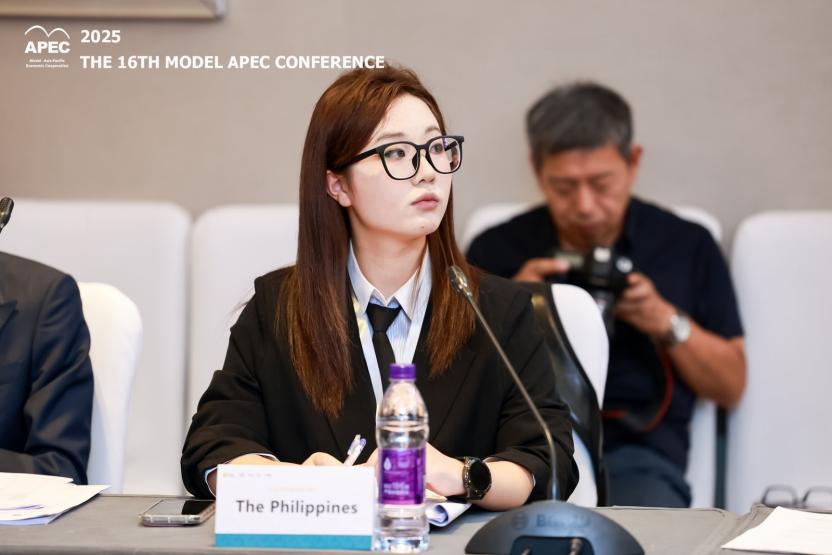 在全国总决赛中,曾薪宇同学代表印度尼西亚在“Green Economy and Sustainable Growth”主题会场1参加比赛,施嘉琪同学代表菲律宾在“Green Economy and Sustainable Growth”主题会场4参与角逐。两位同学以流畅的英文表达、清晰的逻辑架构和扎实的实证分析,清晰阐述政策提案,并在自由讨论中积极建言,体现出优秀的跨文化沟通与协作能力。