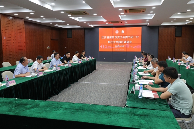 6月4日下午,江西省南昌市安义县委书记彭开先、县人大常委会主任刘万勇、上海市教育基建管理中心副书记、副主任杜守龙等一行14人来校调研松江大学园区管理与建设情况。副校长、松江大学园区管委会副理事长张道方,副校长徐永林,学校相关职能部门负责人出席调研座谈会。