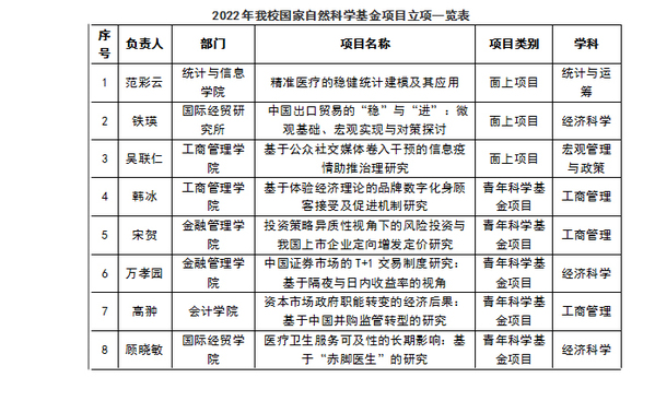 9月8日,国家自然科学基金委公布了2022年度国家自然科学基金面上项目、重点项目、部分重大项目、青年科学基金项目等的评审结果,我校共获得国家自科基金项目立项8项,其中面上项目3项、青年科学基金项目5项。