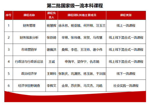 我校申报的6门课程全部入选,其中线上一流课程1门、线上线下混合式一流课程3门、线下一流课程1门、社会实践一流课程1门。截至目前,学校共有10门课程入选国家级一流本科课程。